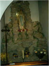 Der Kircheninnenraum ist ein Ort, an dem die Menschen sich zum Gottesdienst versammeln oder einfach zum Beten aufhalten können. Deshalb sind hier Bänke zum Sitzen und auch zum Knien.Bei einem Dom ist eine Kuppelkirche und im Inneren ein Rundbau, den man Rotunde nennt. Wie im Dom von St. Blasien, die Marienkapelle, diese Kapelle eignet sich für Gottesdienste im kleinen Kreis. So werden in diesen Kapelle vor allem taufen gefeiert. Deshalb steht in der Mitte das große Taufbecken. Dahinter steht der Marienaltar und der gusseiserne Ständer für die Kerzen. (In der Corpus Christi Kirche Döbern in einer Grotte rechte Seite vom Eingang)Menschen, die für ein besonderes Anliegen oder für andere Menschen beten möchten, zünden gerne eine Kerze an. Diese Kerze brennt auch noch, wenn man die Kirche schon verlassen hat und ist ein Zeichen dafür, daß das Gebet fortdauert.